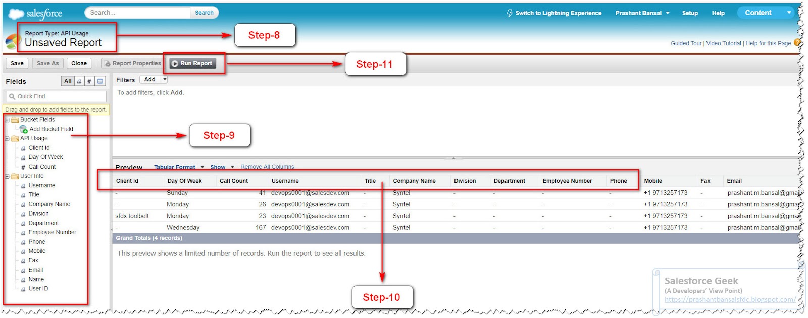 Step-8: You can create a brand new Report as well based on a specific requirement by using the “API Usage” Report Type