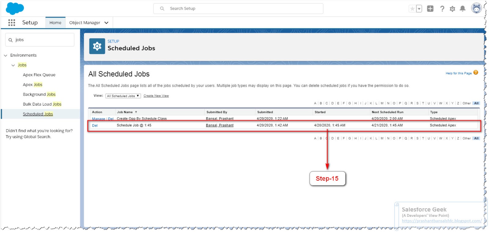 Step-10: We can find the list of Scheduled Jobs by going to Setup >